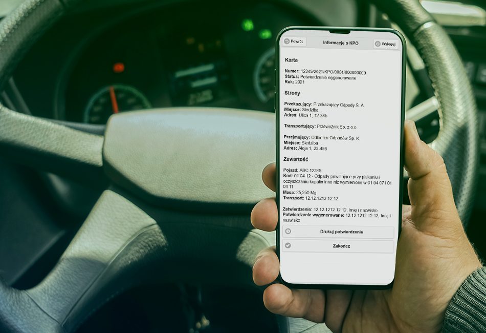 Dzięki specjalnej aplikacji uruchamianej na telefonie kierowca wie jaki ma danego dnia transporty oraz zatwierdza ich wykonanie.